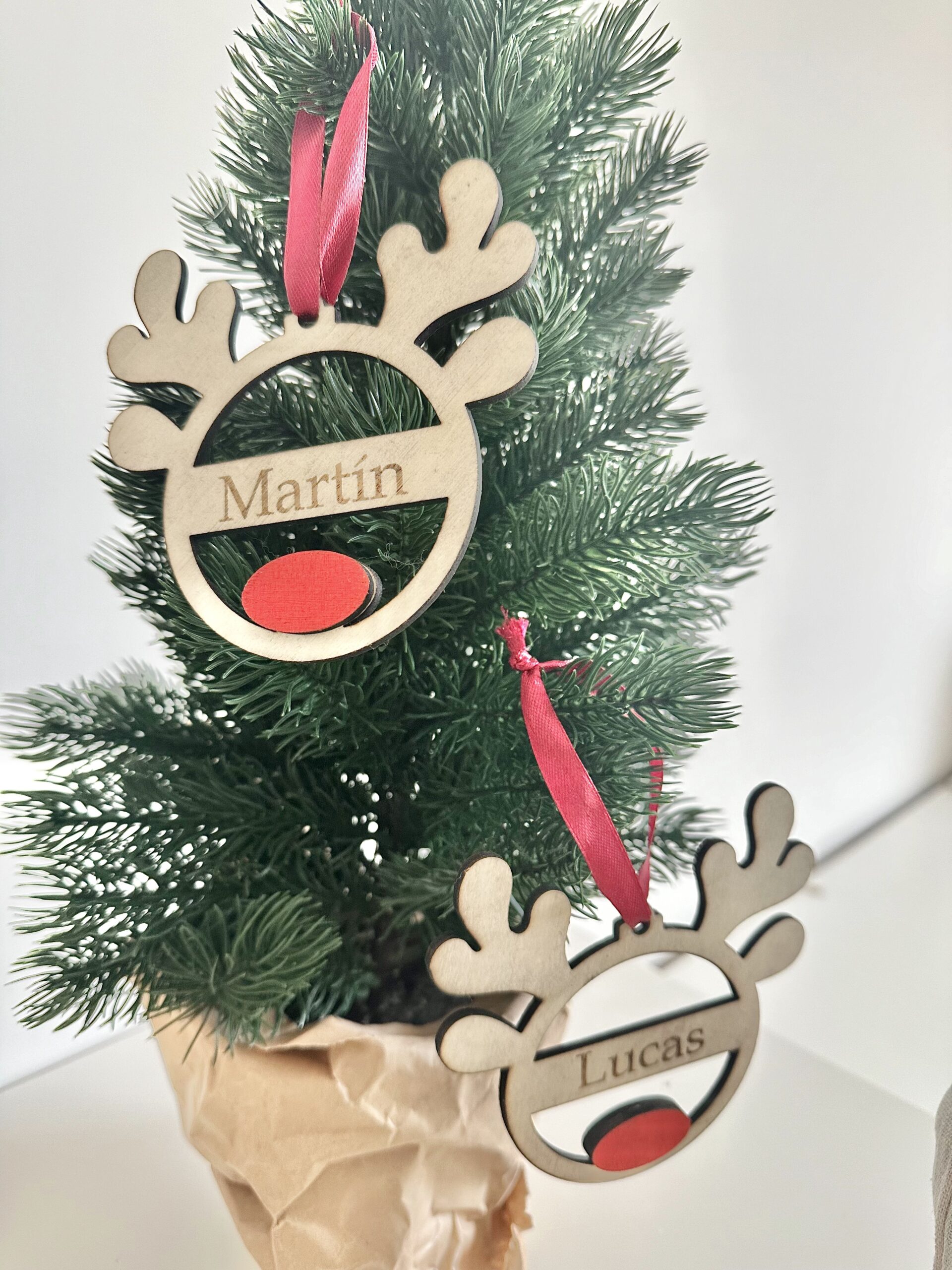 (Envío Gratuito por 80€ de compra)Bola de navidad con la forma de un reno, personalízala con el nombre de tu peque.